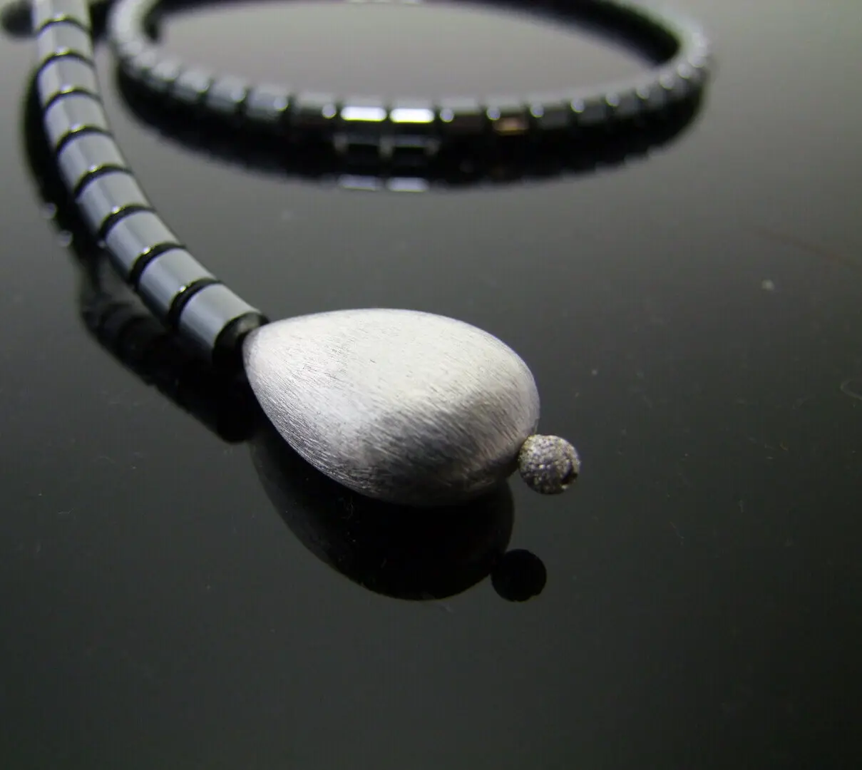 Techniken: Knoten zwischen den Perlen für langlebige Flexibilität, saubere Abschlusskappen, stabile Drahtseile, handvernähte Details.