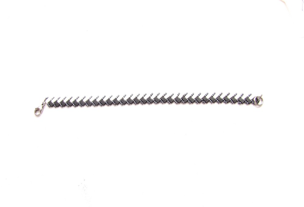 Hübsches Armband in Schwarz Weiss, mit hämatitfarbenen Rocailles.