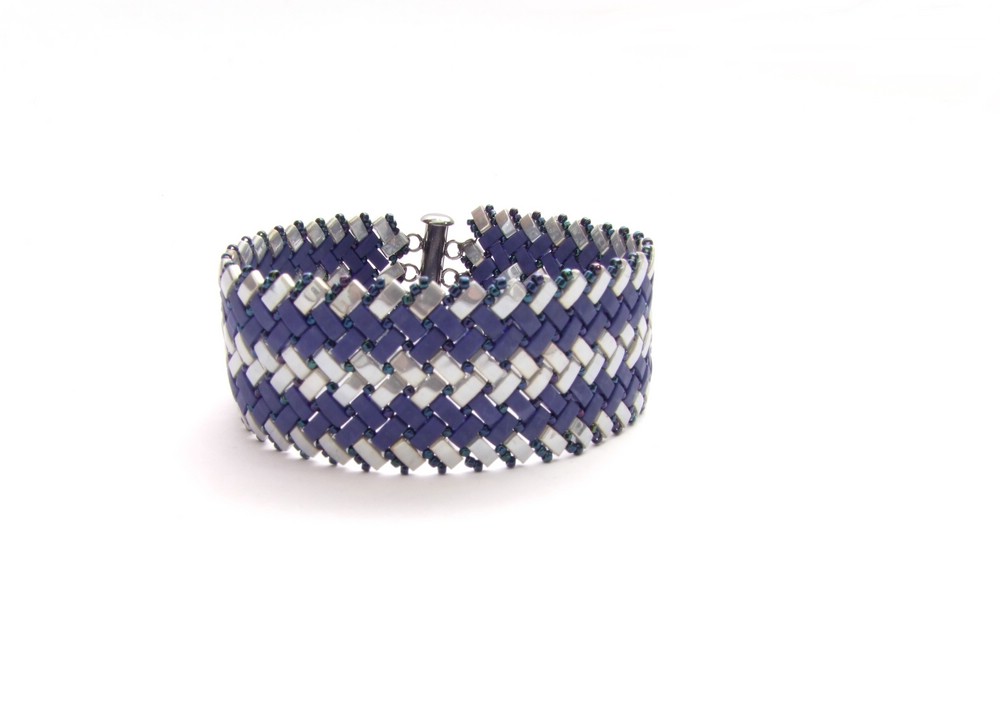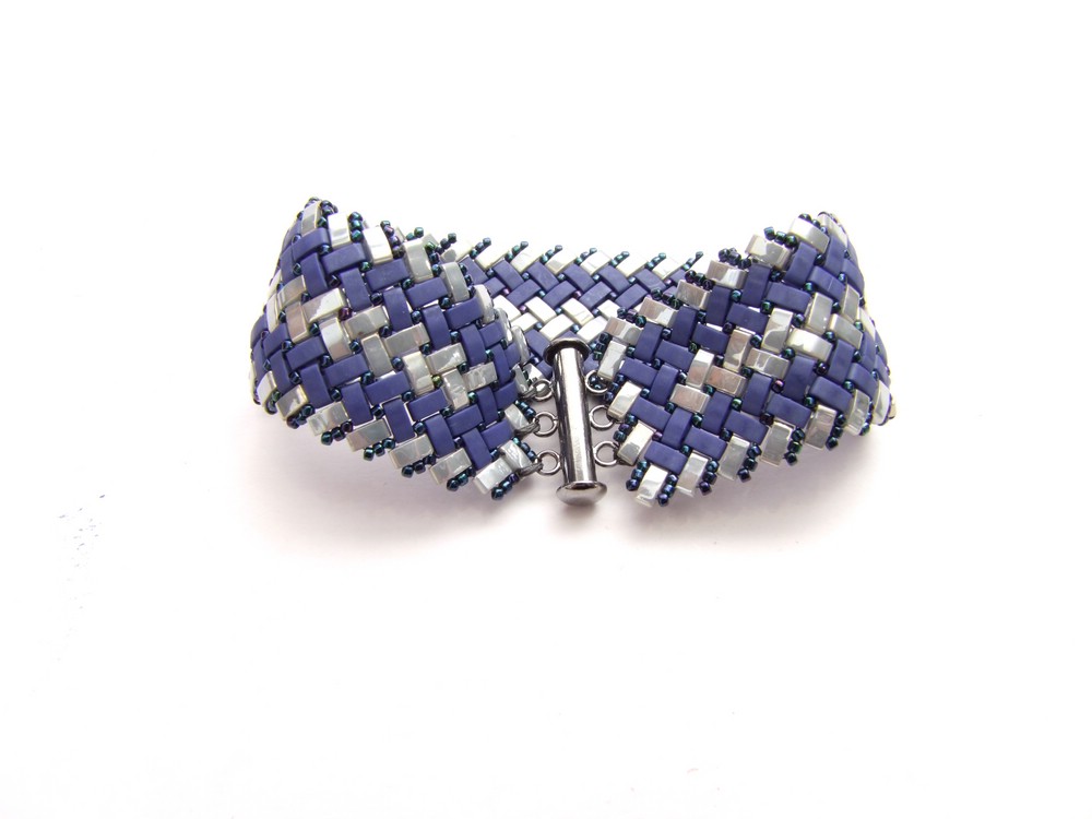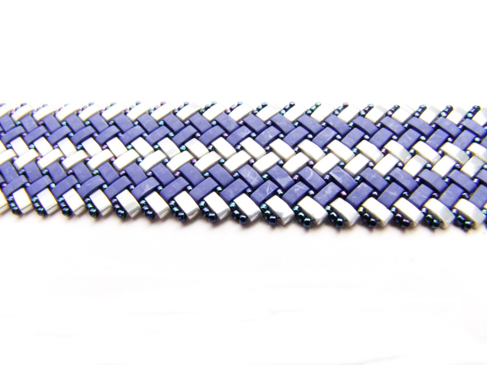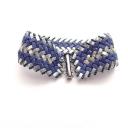 Ein breites, aber angenehm zu tragendes Armband in Blau und Silber.