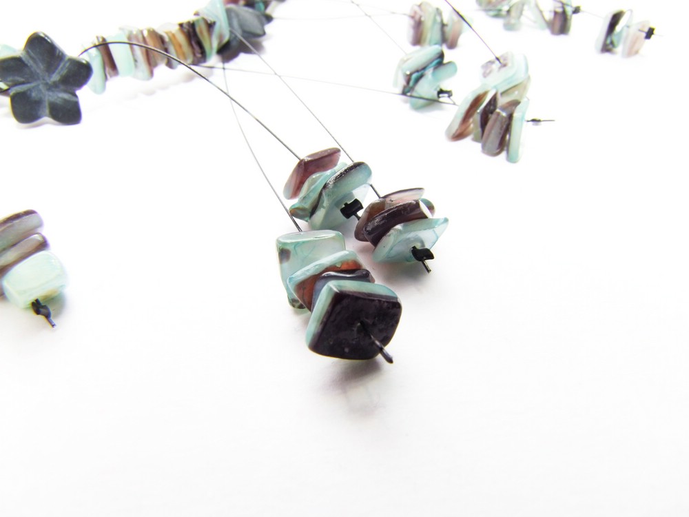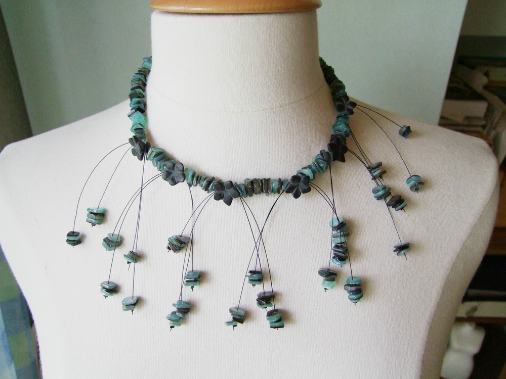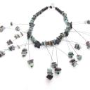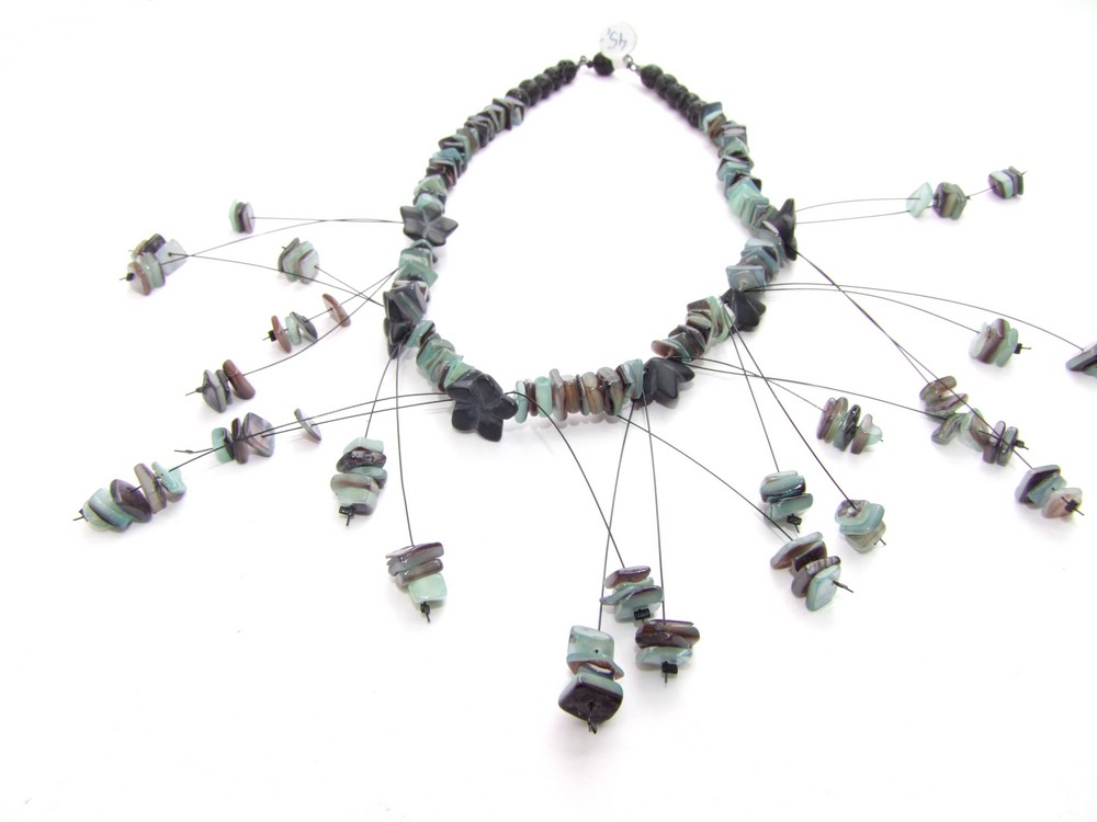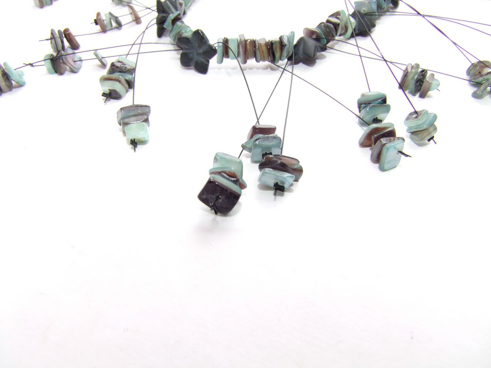 Außergewöhnliche Kette aus Natursteinsplittern und dazwischen Blüten aus Onyx.