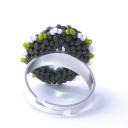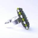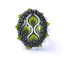 Schöner Ring im charakteristischen Muster der siebziger Jahre, in einem lebhaften Grünton. Umrandet mit Rocailles in abgestimmten Farben.