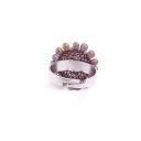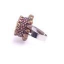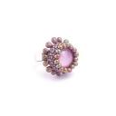 Ein wunderschöner Ring mit einem rosafarbenen Glascabochon, umgeben von japanischen Tropfenperlen und Delicas.