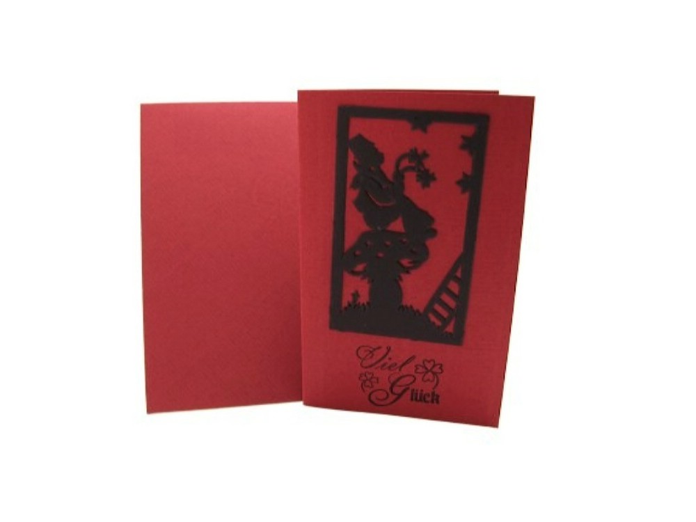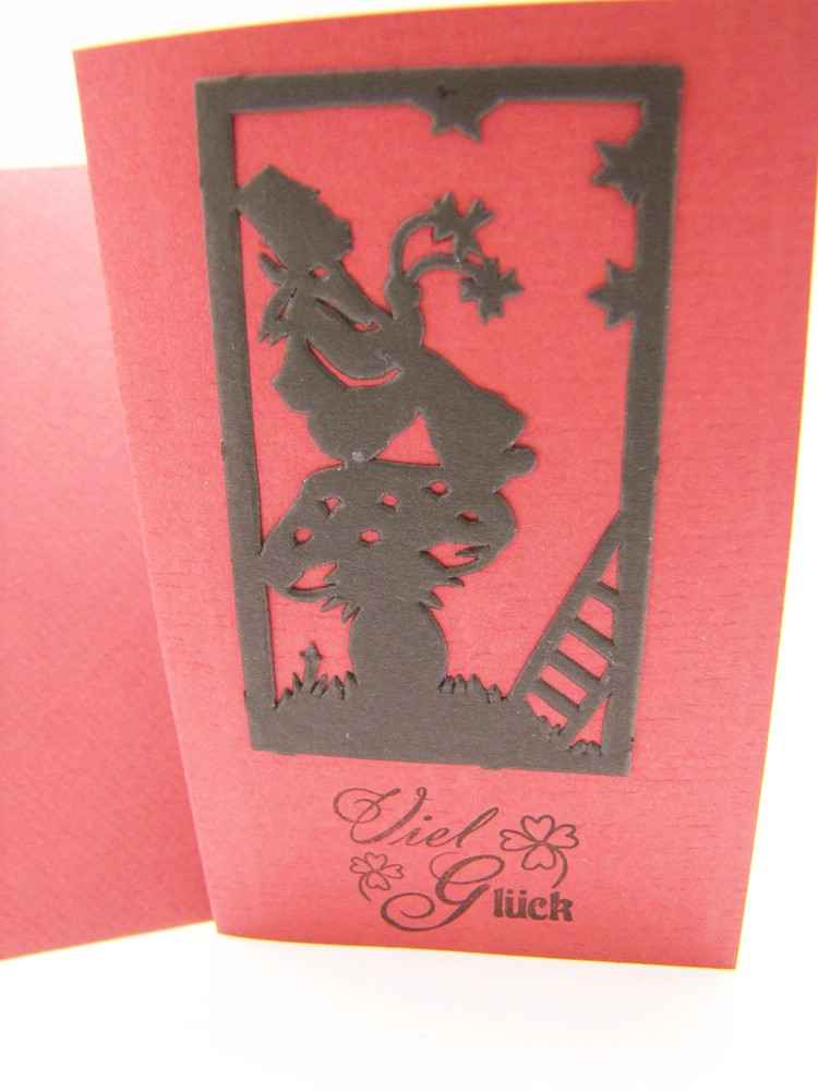 Kleine Karte in rot, mit nostalgischem Scherenschnitt.
