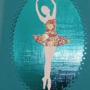 Türkise Karte mit einer Ballerina im Blumentütü.