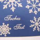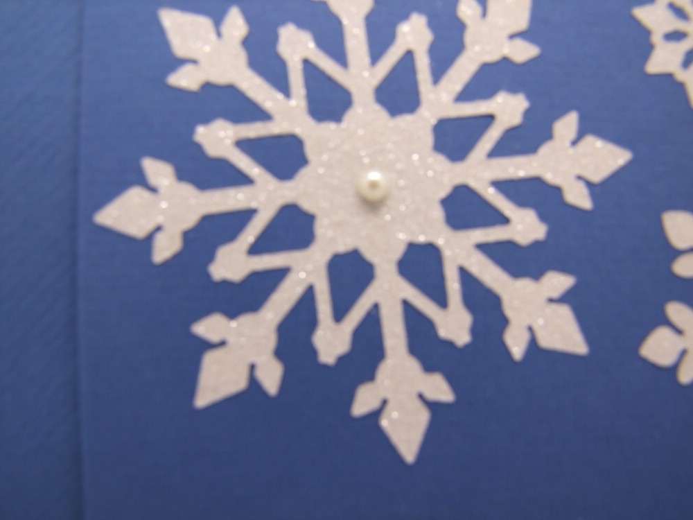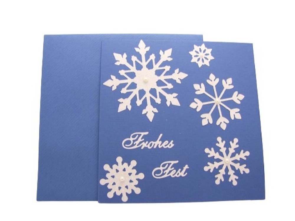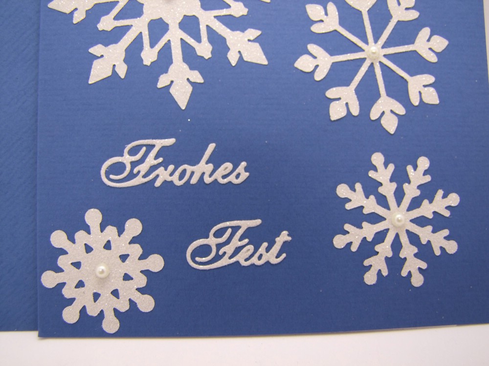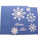 Dunkleblau Karte mit Glitzerschneeflocken.