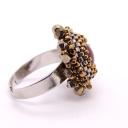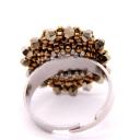 Bernsteinfarbener Glascabochon, umrahmt mit rosegoldfarbenen Swarovski®Schliffperlen und japanischen Delicaperlen in silber und rosegold. Dadurch wirkt er sehr edel.