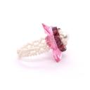 Aus Swarovski® Herzen und verschieden Glasperlen ,ist ein wunderschöer Blütenring entstanden.Die Ringschiene ist ebenfalls gefädelt.