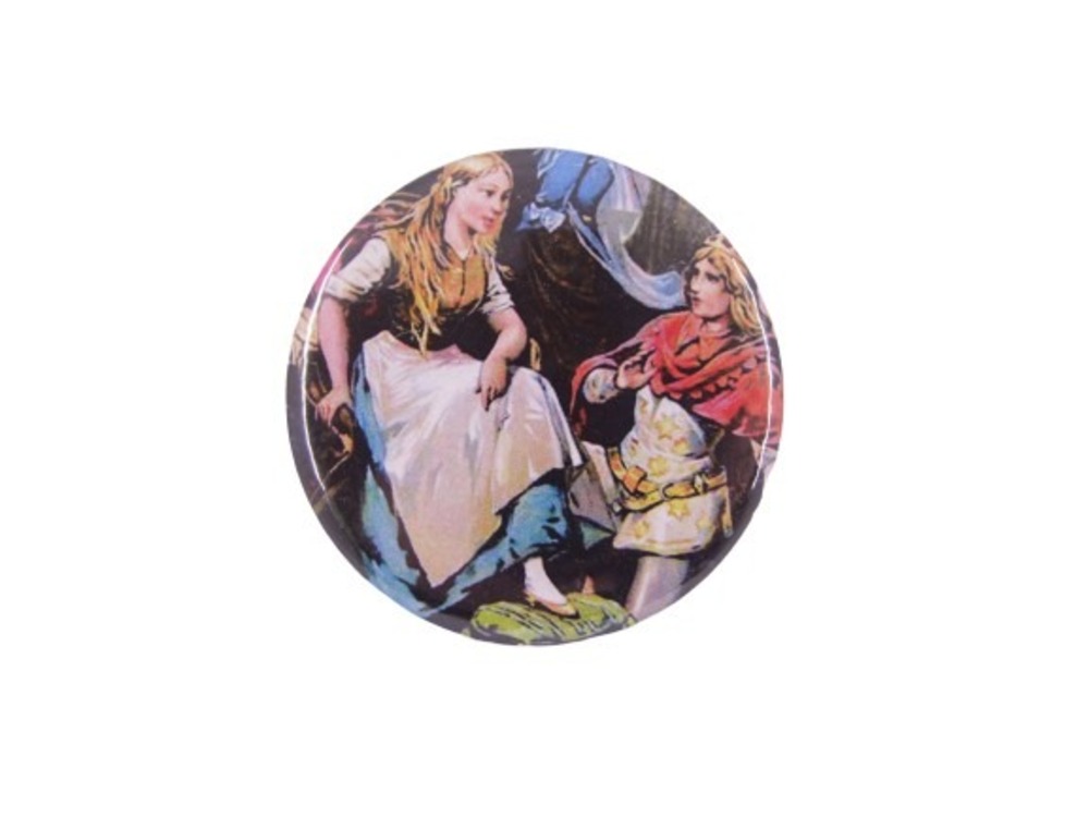 Ein hübscher Taschenspiegel mit Aschenputtel und dem Prinz in einer nostalgischen Illustration.