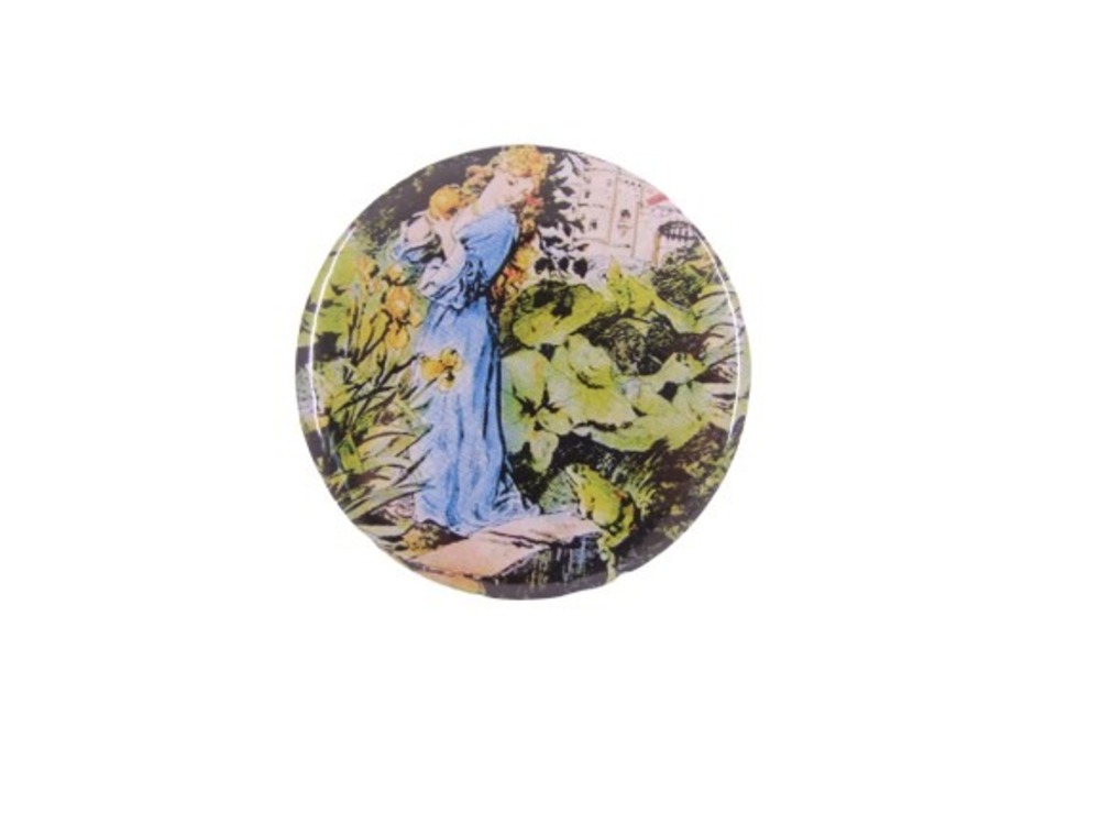 Ein hübscher Taschenspiegel mit einem Motiv aus Froschkönig in einer nostalgischen Illustration.