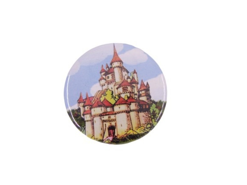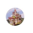 Ein hübscher Taschenspiegel mit einem Märchenschloss in einer nostalgischen Illustration.