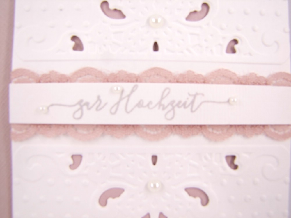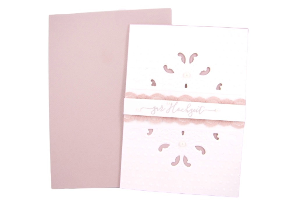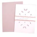 Zarte Karte mit geprägtem Hintegrund und rosa Akzenten.