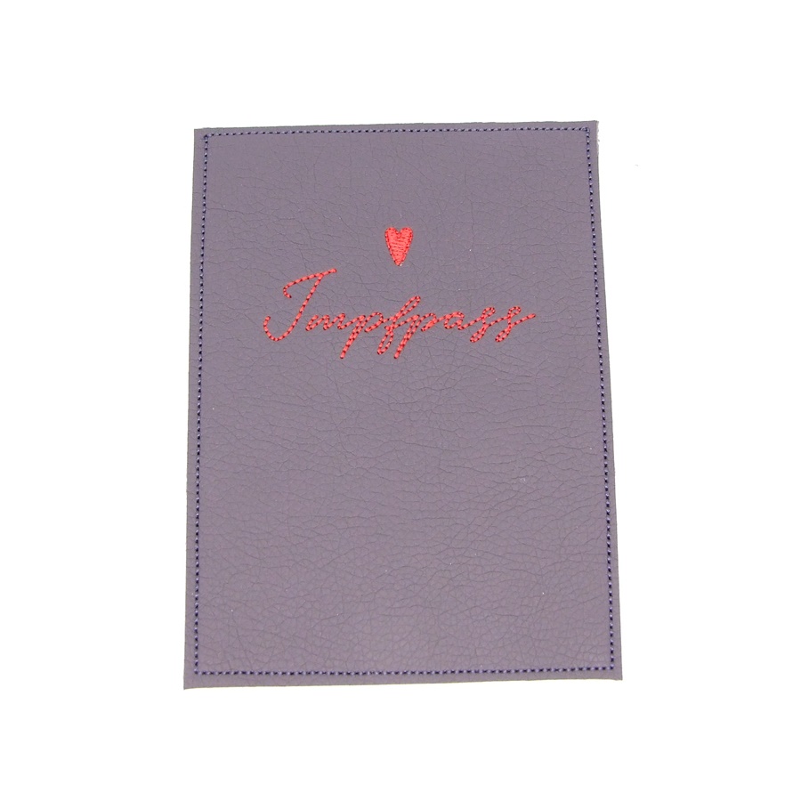 Imfpasshülle aus dunkelgrauem Kunstleder und Stickerei