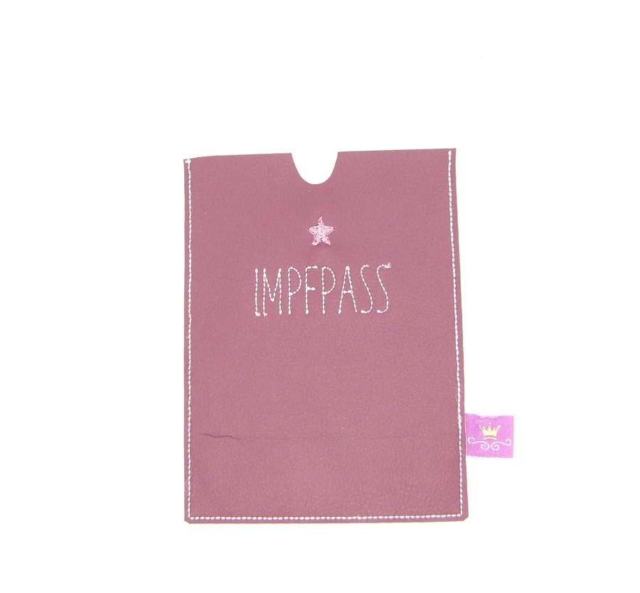 Imfpasshülle aus weinrotem Kunstleder und weisser Stickerei