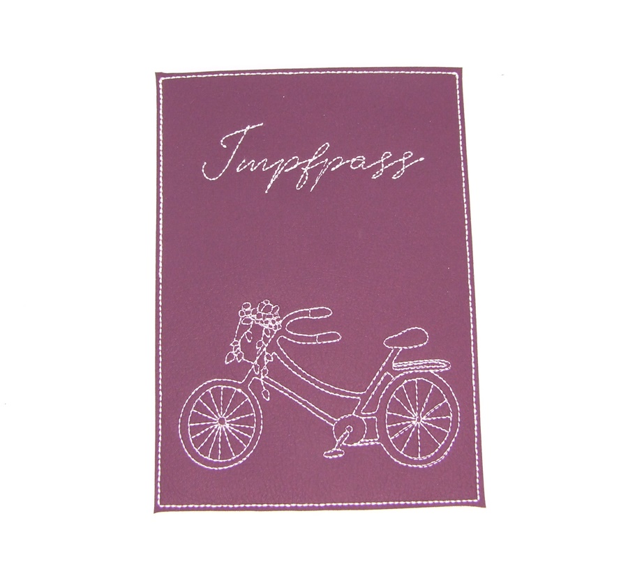Eine Impfpasshülle aus weinrotem Kunstleder mit Stickerei ist eine stilvolle und praktische Möglichkeit, deinen Impfpass zu schützen.